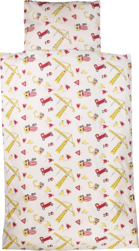 Eintauchen in kuschelig weiche Bettwäsche mit den Bildern der faszinierenden Fahrzeuge und Geräte und dann von der Zukunft als Kranführer oder Baggerfahrer träumen, so können kleine Bauarbeiter gut einschlafen. Die Bettwäsche Baustelle besteht aus einem Kopfkissenbezug in der Größe 80 x 80 cm und einem Bettdeckenbezug mit der Größe 135 x 200 cm.
