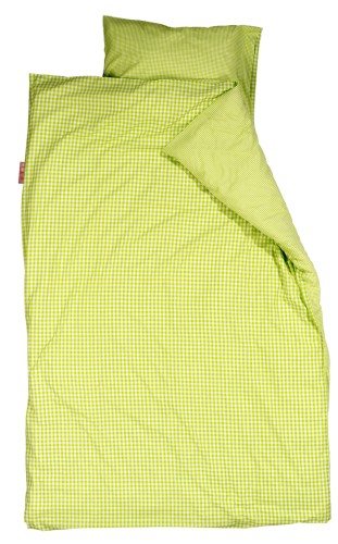 Die Bettwäsche Check Lime bestehend aus einem Bettdeckenbezug und Kopfkissenbezug wird aus fein gewebtem Bauwollstoff mit Vichy Karomuster genäht. Die Quadrate in dem frischen Farbton Lime mit Weiss sind auf einer Seite des Bezugs klein (ca. 3 mm), auf der anderen Seite größer (ca. 7 mm). Die Bettwäsche hat einen Hotelverschluss.