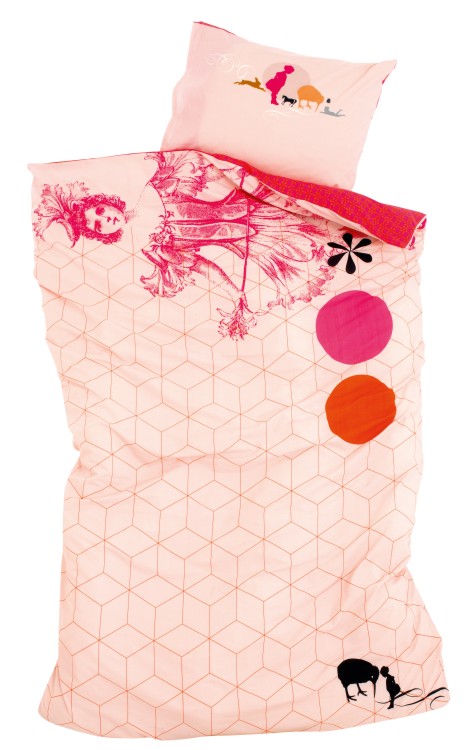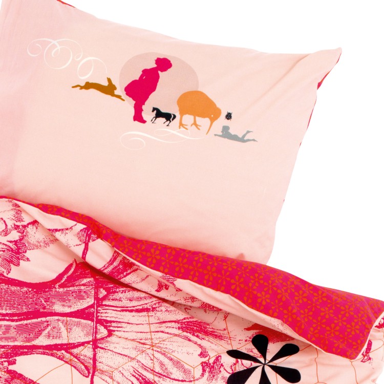 Die Jugendbettwäsche Wonderland besteht aus einem Bettdeckenbezug und einem Kopfkissenbezug mit unterschiedlichem Design und Farbton auf den Bezugsseiten. Sie ist aus 100% Baumwolle mit dem OEKO-TEX® Label Standard 100 gefertigt.