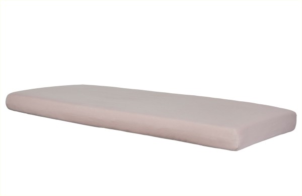 Das hellrosane Spannbettlaken wird aus 100% Baumwolle gefertigt und die das Material ist von OEKO-TEX® geprüft und mit dem STANDARD 100 Label zertifiziert.