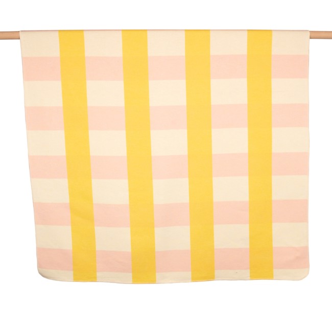 Die leichte Sommerdecke Blockkaro Gelb ist einfach wunderbar. Mit ihrem frischen und hellen Farbmuster aus Gelb, Natur und Hellrosa passt sie perfekt zur Sommerzeit. Als angenehme Unterlage für ein Picknick im Grünen oder zur Entspannung auf der Liegewiese eignet sich die Flanelldecke Blockkaro Gelb ebenso gut, wie zum wärmenden Einkuscheln beim Zelten oder auf dem Sofa an kühleren Tagen.