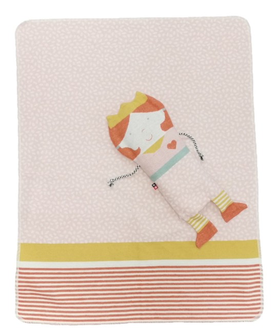 Der Stoff für Puppe und Decke "Prinzessin" wird in Österreich aus 95% Baumwollgarn und 5% Viskosegarn gewebt und zur Decke und Puppe weiterverarbeitet. Das Produkt ist nach OEKO-TEX® Standard100 geprüft und zertifiziert.