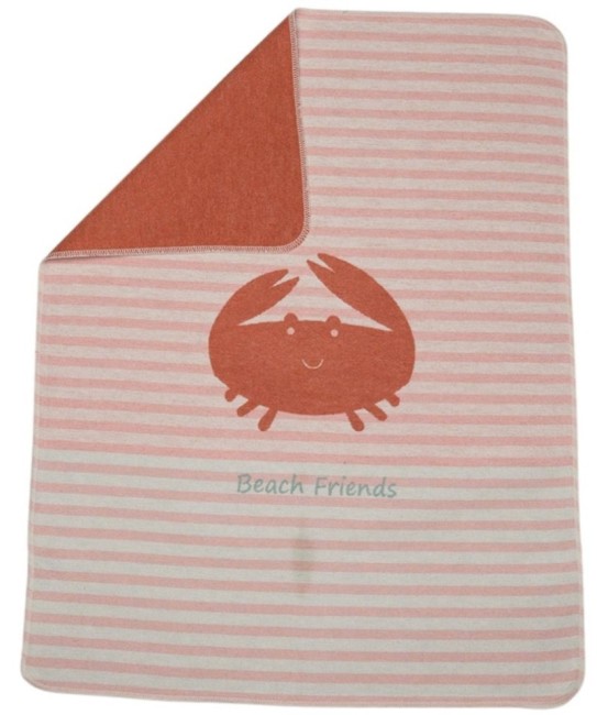 Die Kinderdecke Krabbe ist eine weiche Wohlfühldecke, die an kühlen Tagen bei einer gemütlichen Märchenstunde im Kinderzimmer kuschelig wärmt. Auch draussen auf der Wiese ist sie eine angenehme Liegedecke oder sie sorgt für wohlige Wärme beim Zelten und am Strand. Die leichte Sommerdecke hat unterschiedliche Grundfarben auf der Vor- und Rückseite und eine dekorative Umrandung mit einem weissen Zierstich. Zur Reinigung kann die Kinderdecke bei 30° in der Waschmaschine gewaschen werden. Das Produkt wird in Österreich hergestellt und ist nach Öko-Tex Standard100 geprüft und zertifiziert.