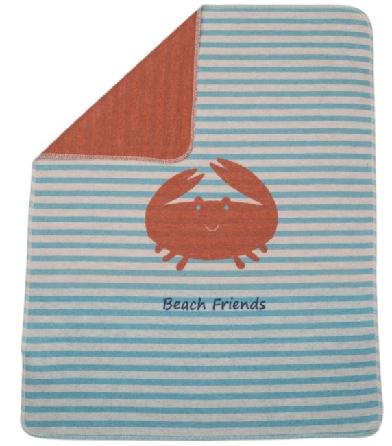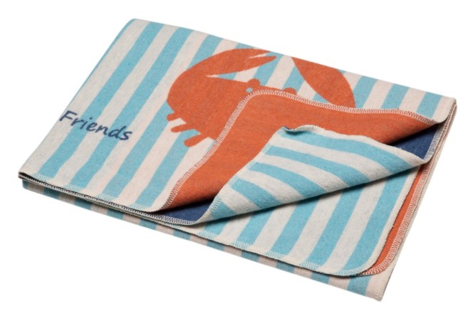 Die Kinderdecke Krabbe ist eine kuschelig weiche Spiel- und Schmusedecke und eine angenehme Liegedecke draussen auf der Wiese oder sorgt für wohlige Wärme beim Zelten und am Strand. Die leichte Sommerdecke hat zwei unterschiedliche Farbseiten und eine schöne Umrandung mit einem weissen Zierstich. Zur Reinigung kann die Kinderdecke bei 30° in der Waschmaschine gewaschen werden. Das Produkt wird in Österreich hergestellt und ist nach OEKO-TEX® Standard100 geprüft und zertifiziert.