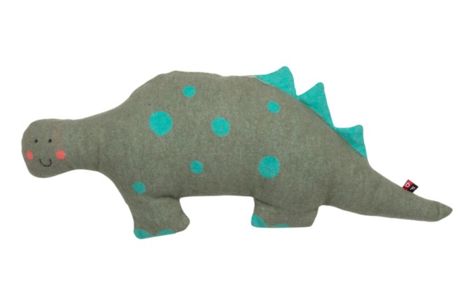 Der freundlich lächelnde Dino mit weichen, zackenförmig aufgestellten Rückenknochen ist ein von Kindern sehr geliebtes Spiel- und Schmusekissen. Das Kissen Dino wird in Österreich hergestellt und hat eine kuschelweiche Kissenhülle aus 95% Baumwolle und 5% Viskose. Die Stoffhülle wird mit einem Anteil von mind. 50% recyceltem Garn gewebt und ist von Ecocert Greenlife zertifiziert. Auf der efeugrünen Kissenrückseite ist der Schriftzug "Be Happy" eingewebt. Die Hülle kann nicht abgenommen werden und ist mit Polyesterfasern gefüllt. Zur Reinigung kann das Kissen im Schonwaschgang gewaschen werden.