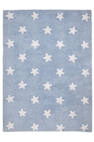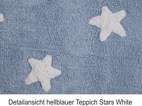 Der Teppich Stars Blau bietet einen angenehm weichen Untergrund für die Füsse als Bettvorleger oder einen weichen und warmen Untergrund in der Spielecke.