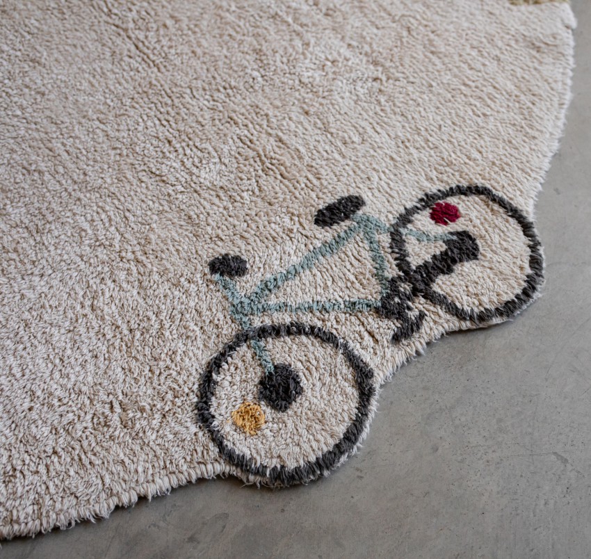 Der Teppich Wheels kann bei 30° C im Schonwaschgang gereinigt werden. Für die Wäsche ist eine Waschmaschinen-Kapazität von mindestens 6 kg erforderlich.
